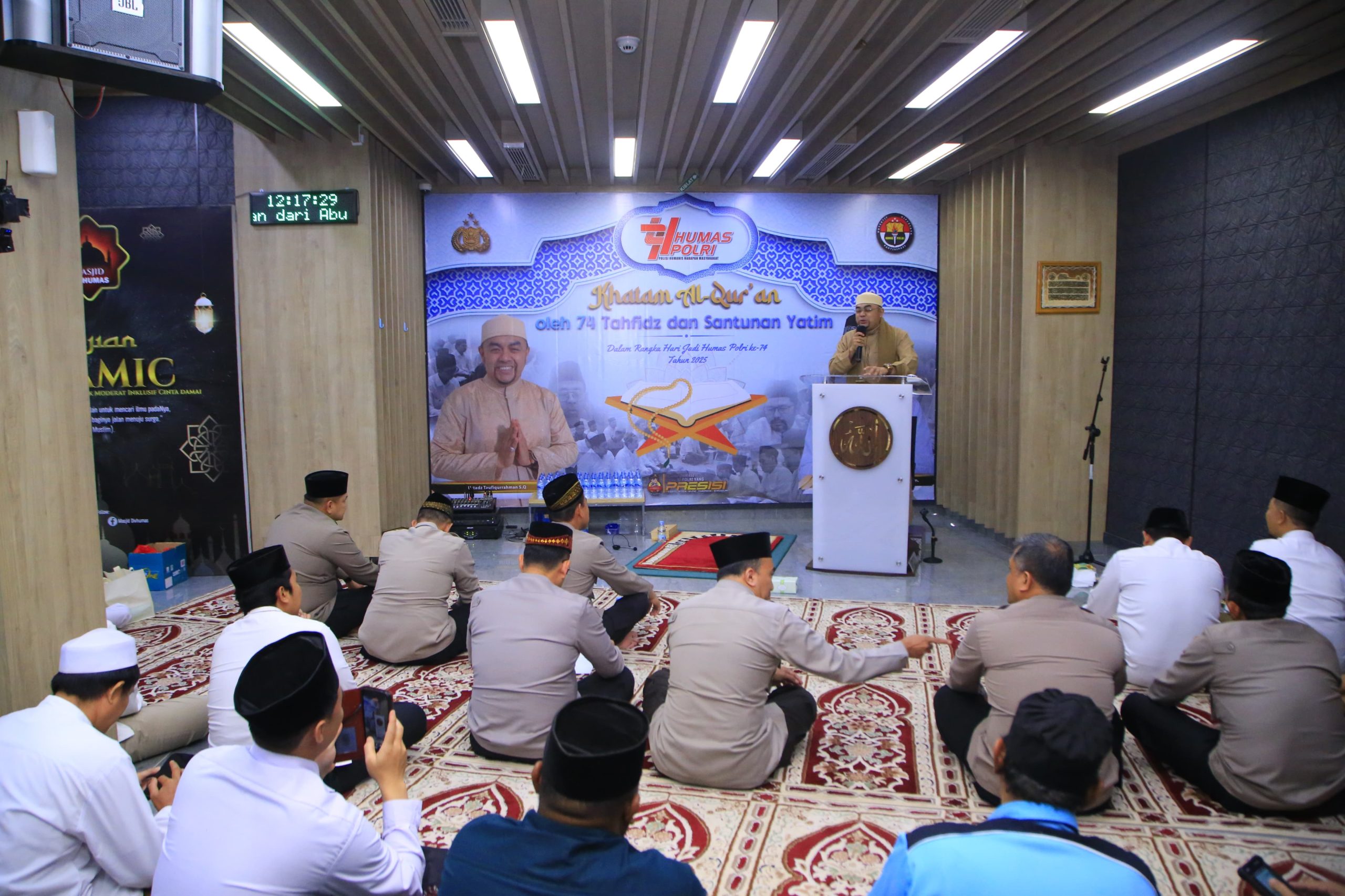 “Selamat hari jadi humas polri ke 74, terima kasih kepada Mabes Polri, terutama Kadivhumas Polri telah menyelenggarakan acara khotmil quran sebanyak 74 khataman,” ungkapnya, Senin (27/10/2025).